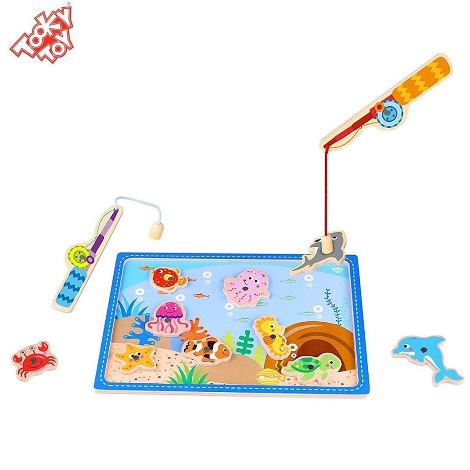 Brinquedo Educativo Pesca Divertida Magnética Tooky Toy em madeira. Pesque o peixe com a vara de pescar magnética. Possui imã, o que deixa a brincadeira mais dinâmica e divertida. A pescaria é responsável por trabalhar a funcionalidade das mãos. Habilidades desenvolvidas: coordenação motora, concentração e raciocínio. Trabalha, atenção, conceitos matemáticos na contagem dos peixes, as cores e formas dos animais marinhos. Acompanha duas varas de pesca magnética e 10 animais marinhos.